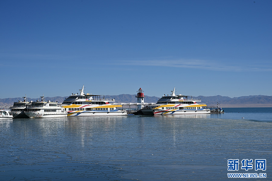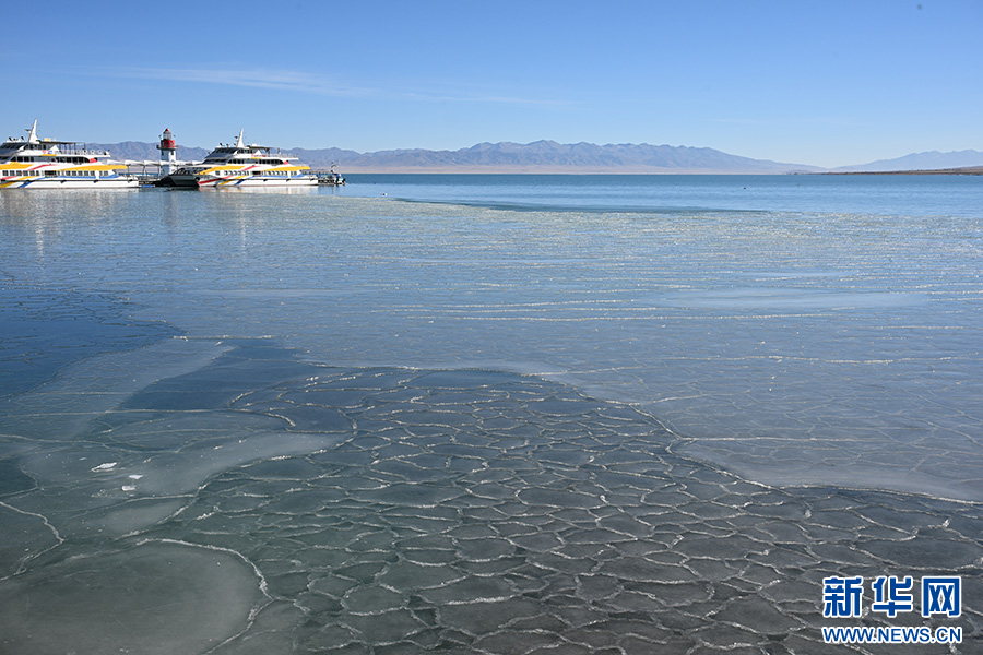 进入12月后,青海湖湖面逐渐冰封,冰面上自然形成了冰裂纹和冰泡,在阳光照射下闪烁着光芒。冰与水交融的独特景致吸引游客纷至沓来,定格这份高原冬日的限定美景。