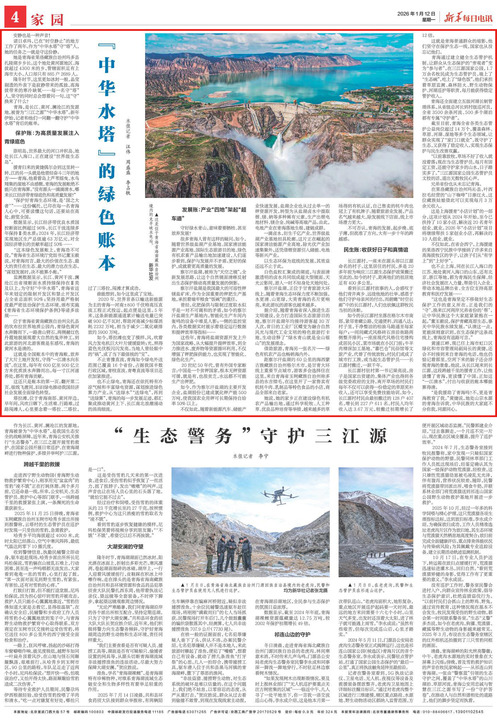 青海,是长江、黄河、澜沧江的发源地,被誉为“三江之源”“中华水塔”。新年伊始,记者和他们一同翻一翻守护“中华水塔”背后的账单。